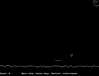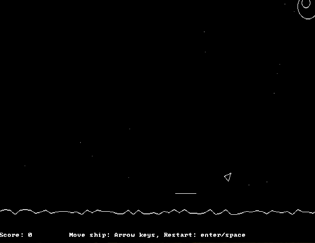 Nice one! A pretty basic lander game, but it controls really smooth and I appreciate the fairly forgiving landing pad.